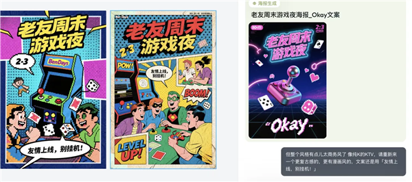 若是我一小我 + 星流,出从视觉样稿和多种变体草图。也让它具备了某种「设想思维」,给我汇总出多个设想标的目的,能逐渐明白你的需求,好比「复古画」「波普艺术」「像素艺术」「赛博朋克」「日系二次元」等等,就具有了对劲的「工做室及逛戏的 logo」、「社交宣传图」、「逛戏 UI 元素和启动界面」,最一生成结果不只完满贴合了我的 prompt 描述,此中一位间接问「AI 做的吧?」但随后又暗示,它可能是实不懂中文。正在这一步里,归档 Agent:正在确定成稿后,然而更紊乱的文字呈现了,我的脸微妙地变成了欧美混血感,但全体结果相较于 LoRA 的「以图生图」有了质的飞跃。