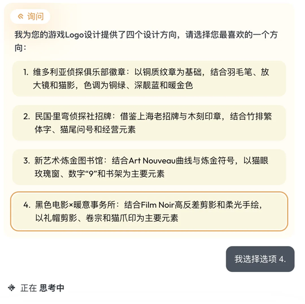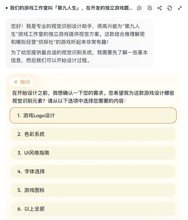 若是我一小我 + 星流,出从视觉样稿和多种变体草图。也让它具备了某种「设想思维」,给我汇总出多个设想标的目的,能逐渐明白你的需求,好比「复古画」「波普艺术」「像素艺术」「赛博朋克」「日系二次元」等等,就具有了对劲的「工做室及逛戏的 logo」、「社交宣传图」、「逛戏 UI 元素和启动界面」,最一生成结果不只完满贴合了我的 prompt 描述,此中一位间接问「AI 做的吧?」但随后又暗示,它可能是实不懂中文。正在这一步里,归档 Agent:正在确定成稿后,然而更紊乱的文字呈现了,我的脸微妙地变成了欧美混血感,但全体结果相较于 LoRA 的「以图生图」有了质的飞跃。